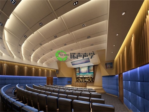 在會議廳內吸聲(shēng)材(cái)料(liào)和結構具有控製混響時間和音質缺陷的雙重功能。由(yóu)於會議廳采用短混響,因此,必須選用強吸聲的結構。又因強吸聲(shēng)處理,因(yīn)此建築師經常采用各種容易(yì)引起聲學缺陷的體形,如圓形、橢圓形、卵形平(píng)麵、穹形屋頂等。而控製音質缺陷的措施,除了配置擴散結構外,通常(cháng)用強吸聲方法,因為它同時起(qǐ)到控製混響時間的作用。